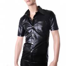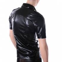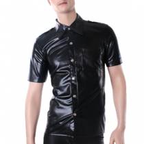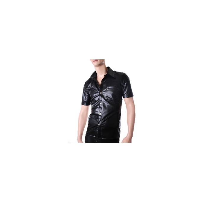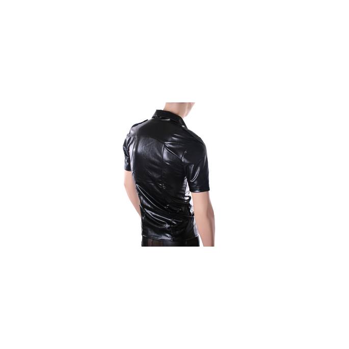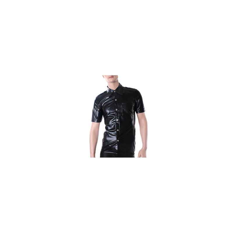 Chemise homme en wetlook, manche courtes, dans le style uniforme. Système d'ouverture par des boutons pressions et col classique, cette chemise est dotée d'une poche au niveau de la poitrine et d'épaulettes.