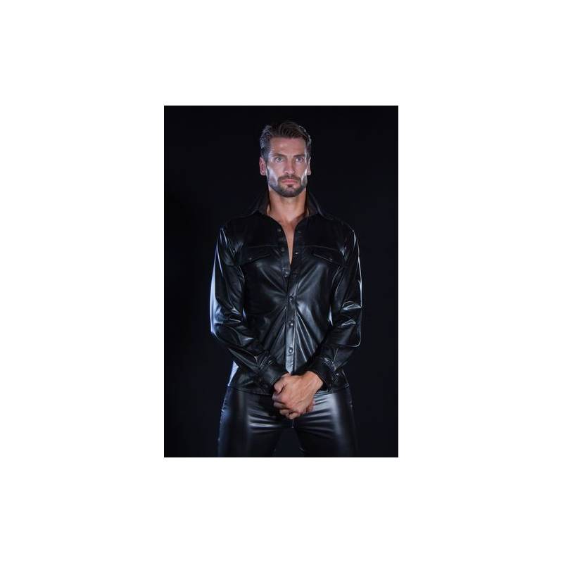 Chemise manches longues en lycra laqué pour un côté sexy et sobre.