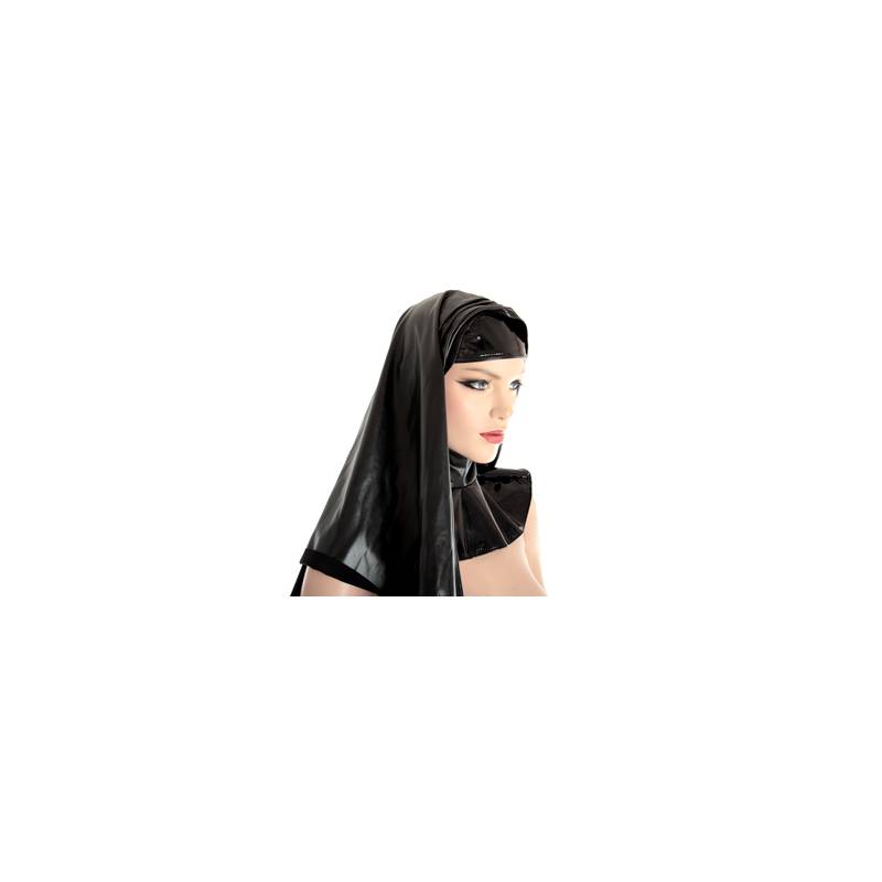 Coiffe de nonne créée par Patrice Catanzaro dans un mélange de vinyle et lycra laqué.