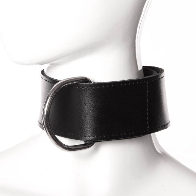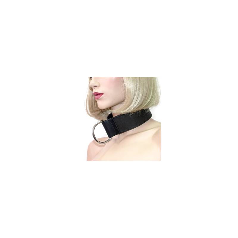 Collier en cuir noir, doté d'un très gros anneau sur l'avant. Système d'accroche par scratch.