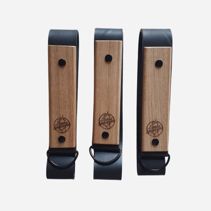 Realizzato in gomma riciclata, il cinturino di questo Frapett è flessibile ma robusto e garantisce una marcatura pulita e precisa. L'impugnatura, in legno di mogano inciso con il logo Fessée Artisanale, garantisce una presa ottimale. L'anello di sospensione nero lo rende facile da riporre.