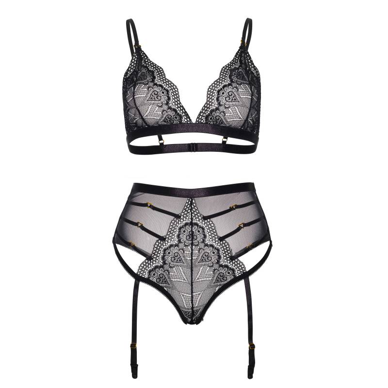 Ensemble lingerie soutien-gorge et culotte taille haute porte jarretelle.