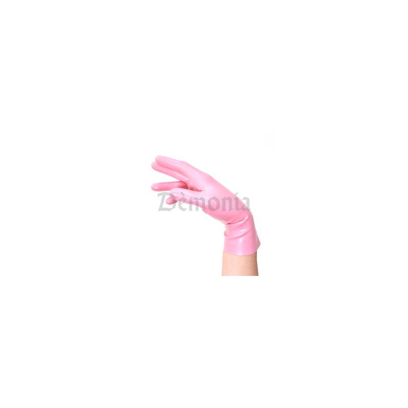 Gants courts en latex rose.