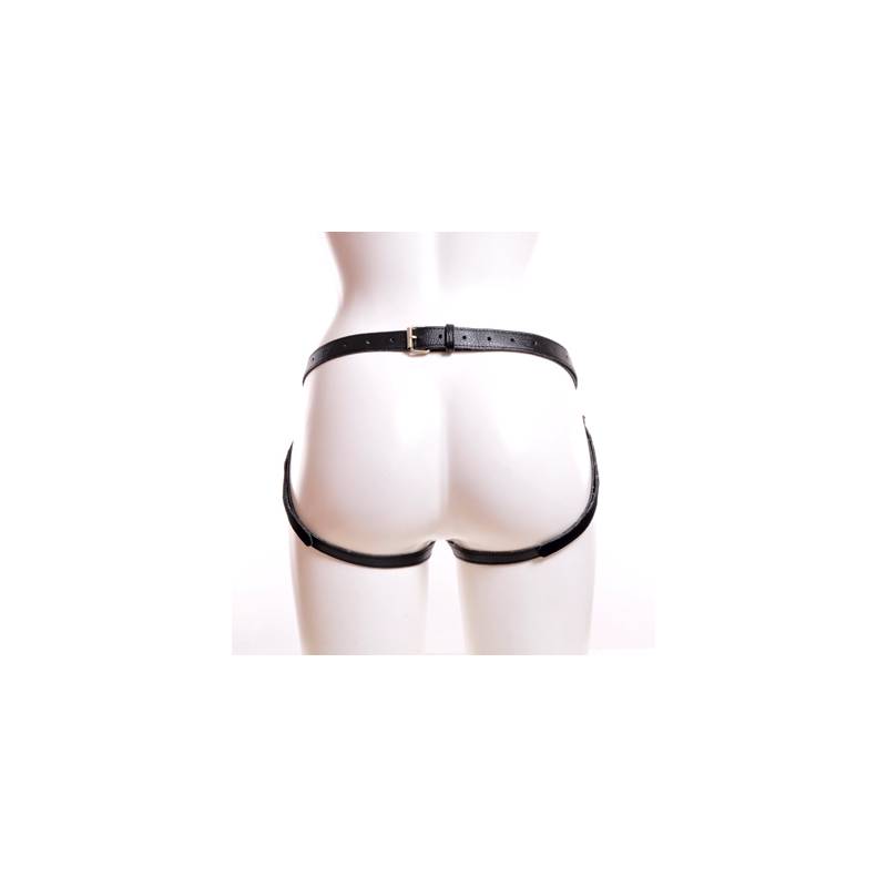 Realizzata in ecopelle con fodera in pelle scamosciata per il massimo comfort, si allaccia intorno alle cosce e ai fianchi, lasciando il cavallo aperto.
