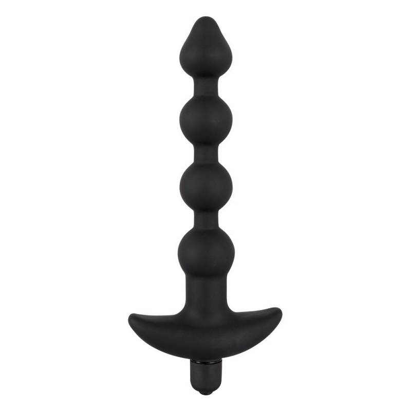 Kit anale in silicone nero composto da un plug classico, un plug rosario (perline anali) e una doccia intima e un "bullet".