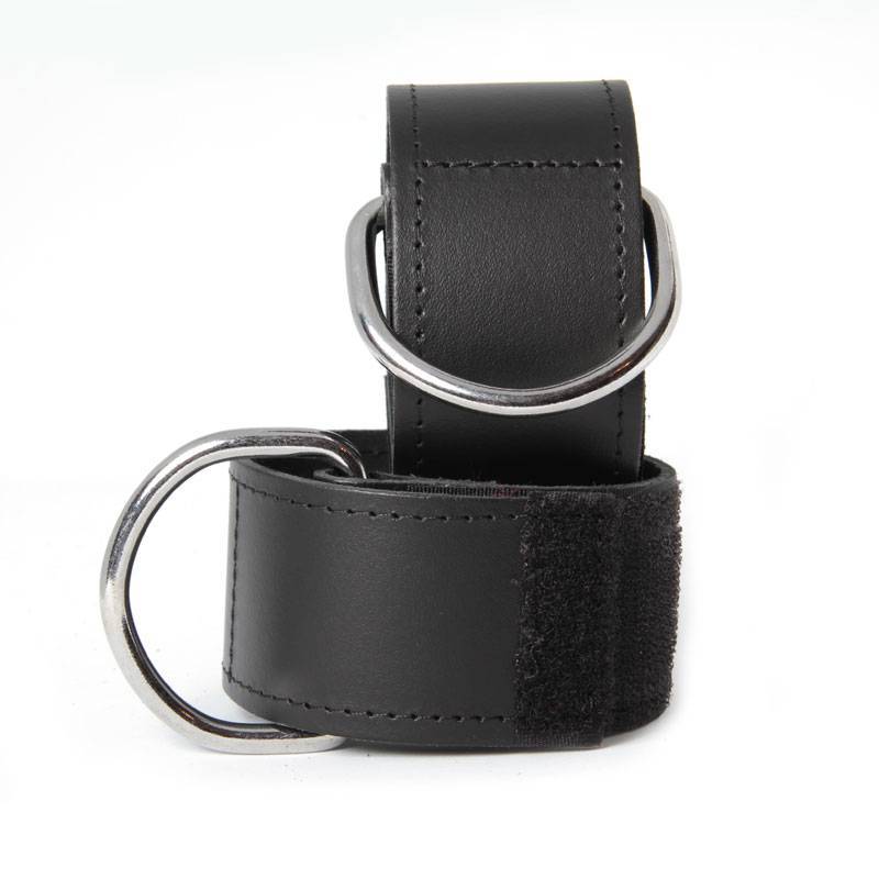 Manette grandi in pelle nera con anello grande da legare.
