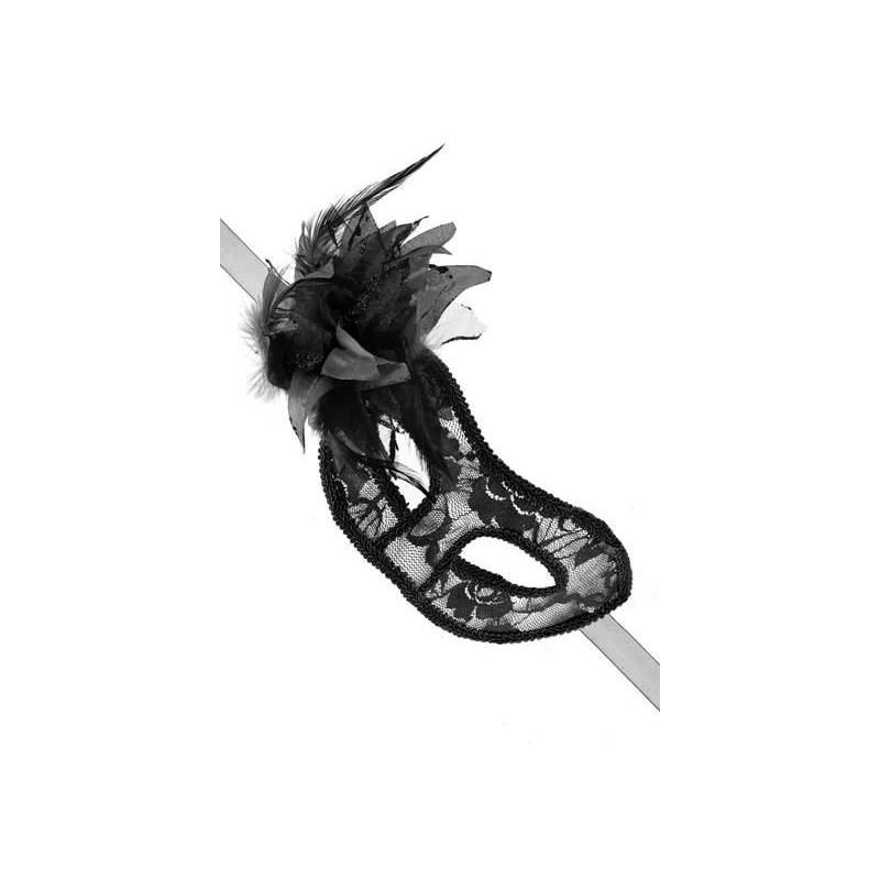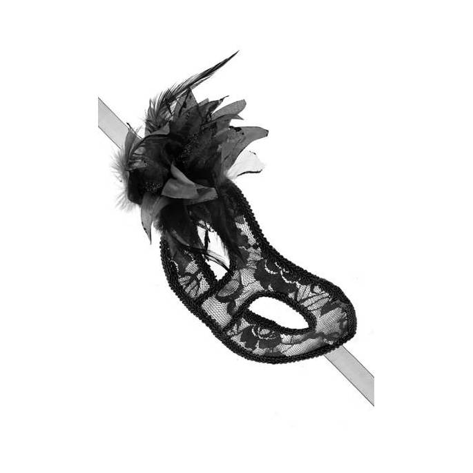 Une fleur faite de plumes noires et de tulle vient orner le côté de ce masque que vous pourrez porter au bal, ou encore au carnaval ou dans vos soirées coquines déguisées.