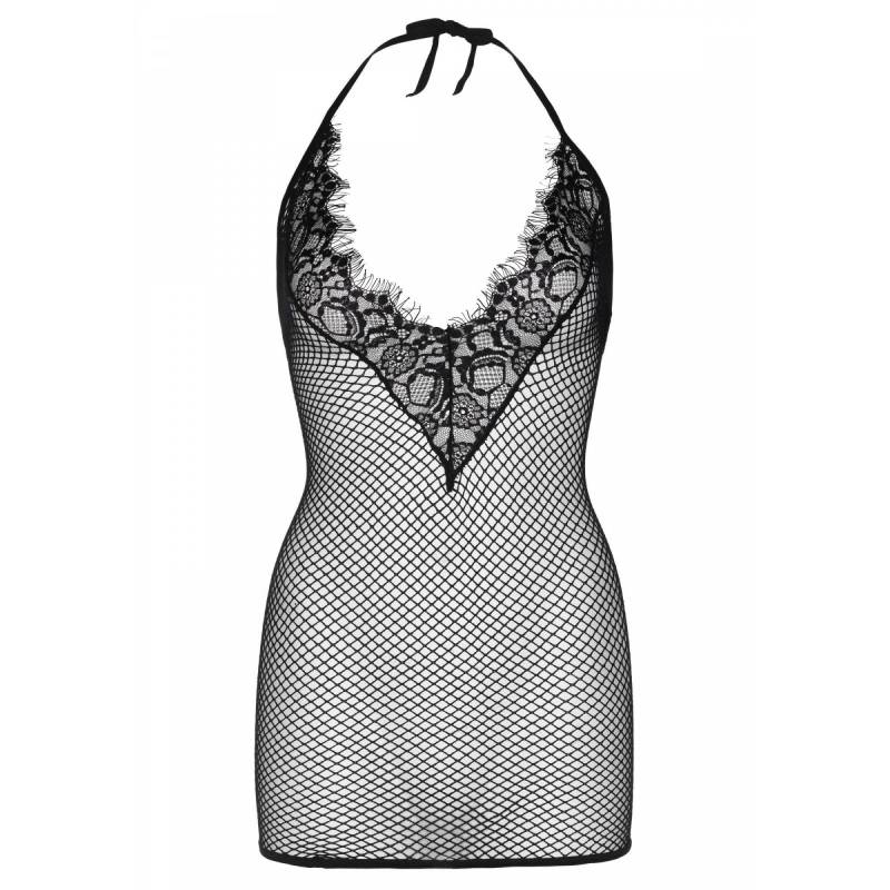 Robe courte en résille noire.
