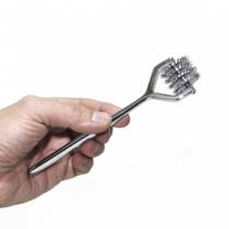 Mettete alla prova i nervi del vostro partner con la ruota SM spike, nota anche come ruota Wartenberg. Realizzato in acciaio cromato, questo strumento combina estetica medica e piacere intenso, rendendo ogni sessione BDSM unica e memorabile. Fate scorrere le sue punte sottili sulla pelle, giocando con la pressione per variare tra una stimolazione delicata e punture dure, senza mai perforare la carne. Disponibile in versioni da una a sette file, può essere adattato a tutti i gusti.