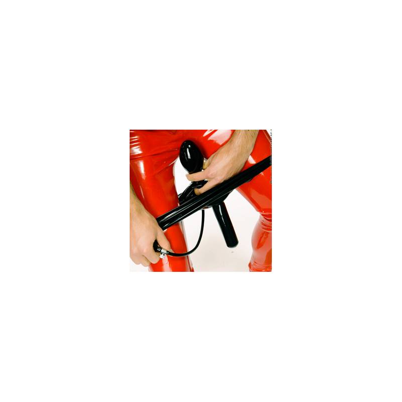 Slip en latex noir avec étui pénien et plug gonflable. Une fois le plug gonflé à la taille désirée, vous pourrez enlever la poire et son tuyau...