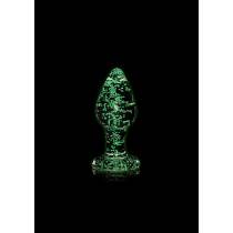 plug in vetro che si illumina al buio con glitter al neon verde.
