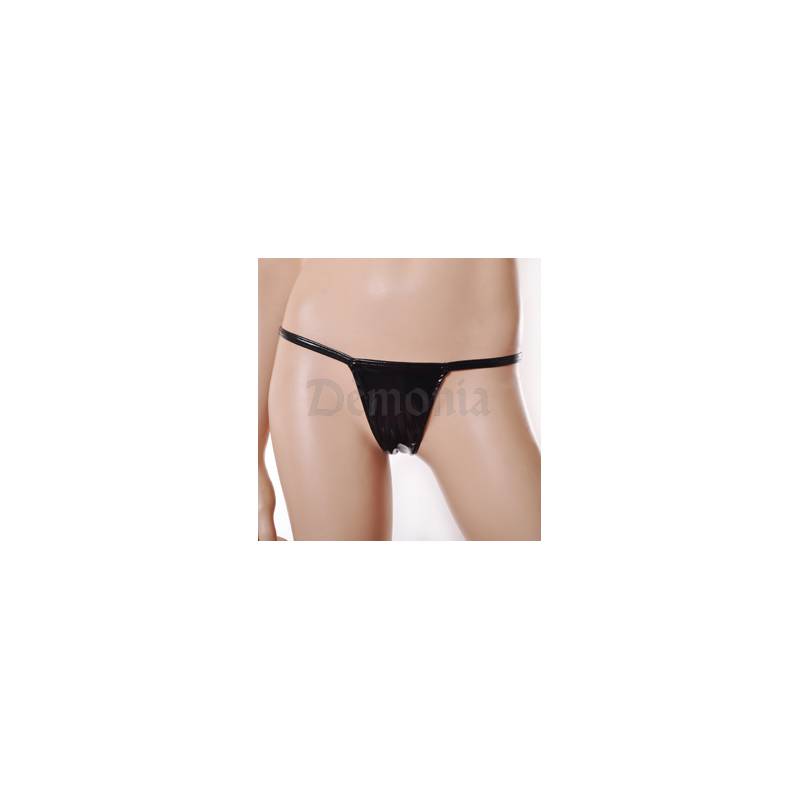 String simple en vinyle noir, relativement fin au niveau de l'entre jambe extensible au niveau de la ceinture.