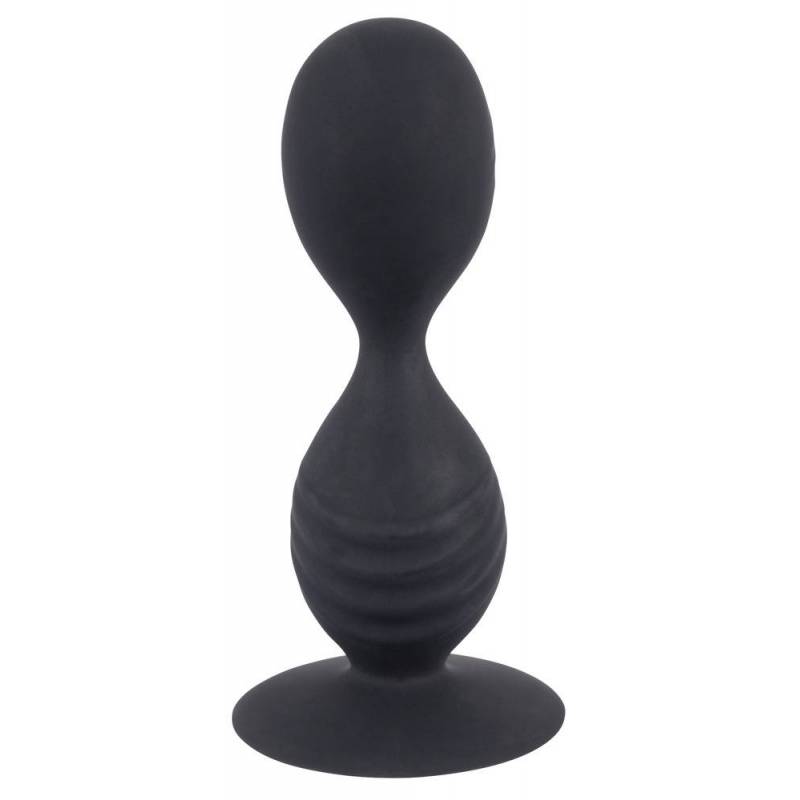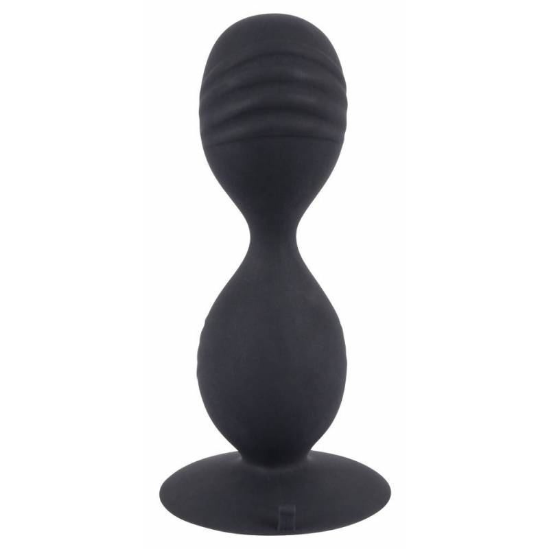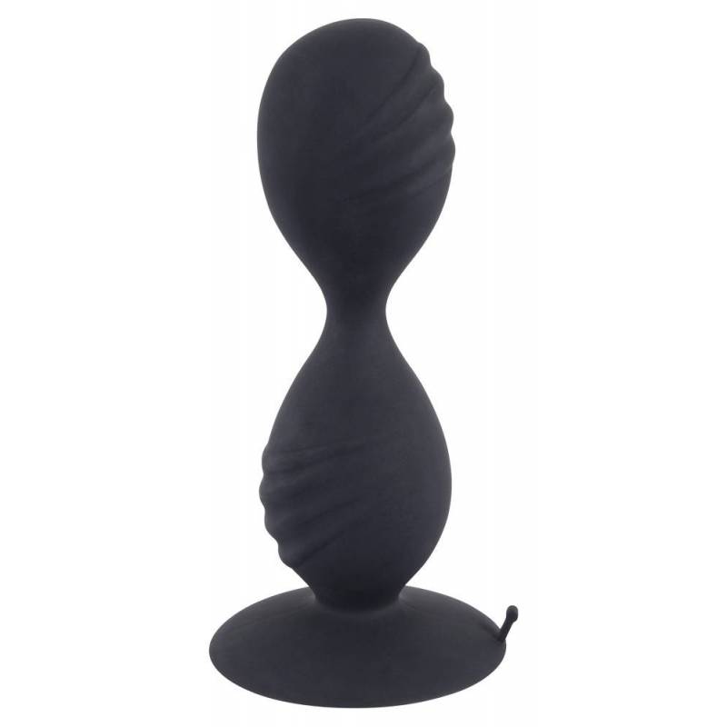 Butt plug con due palline di aspirazione a coste con una pallina rotante in ognuna, come le palline da geisha.