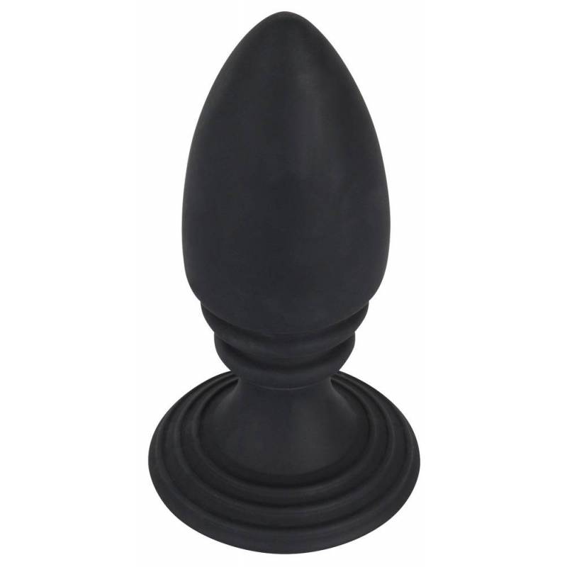 Ventosa in silicone nero a forma conica con nervature stimolanti.
