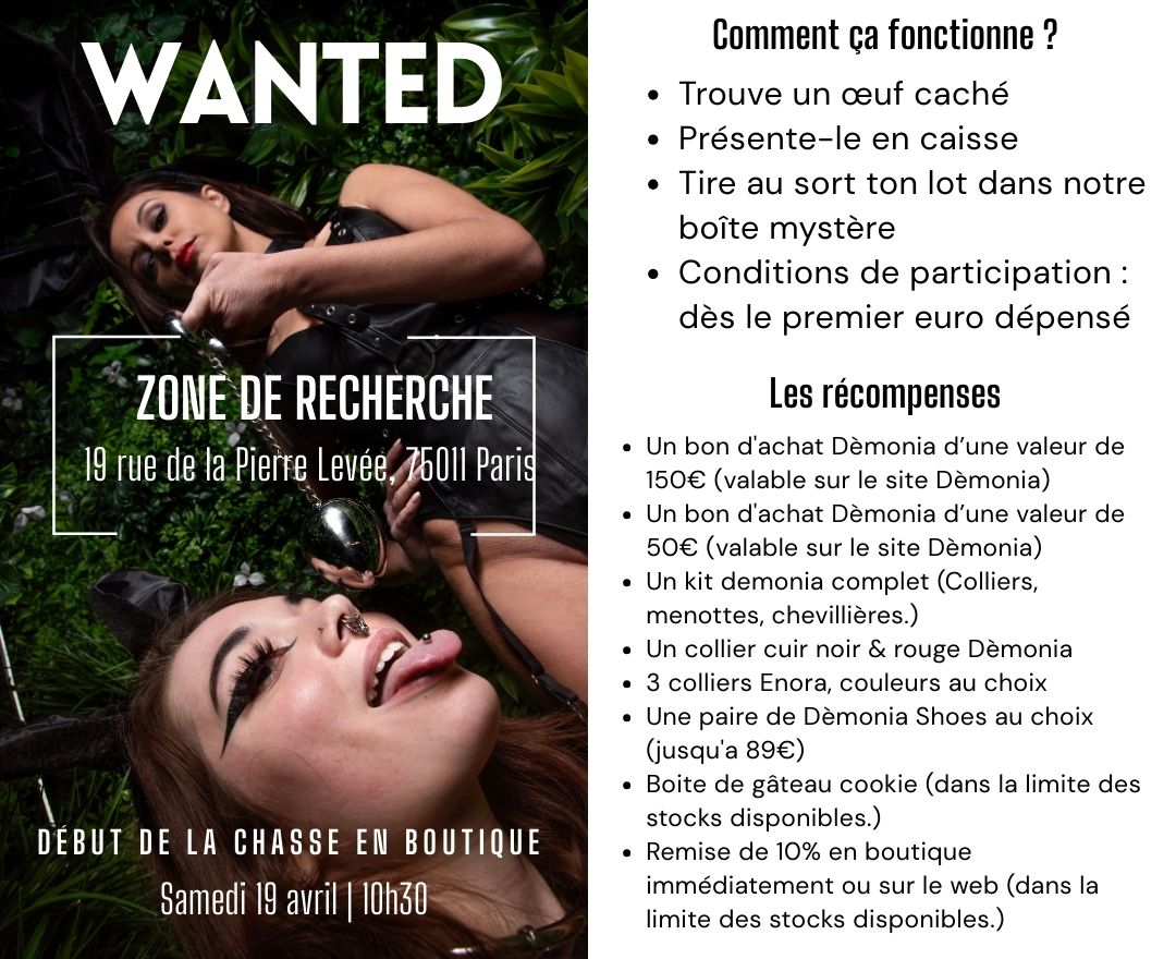 Une chasse aux œufs avec des lots fetish & BDSM à gagner, des cookies bien trop bons pour ne pas être goutés, un décor pensé pour shooter comme un mannequin Dèmonia… et des surprises toute la journée.